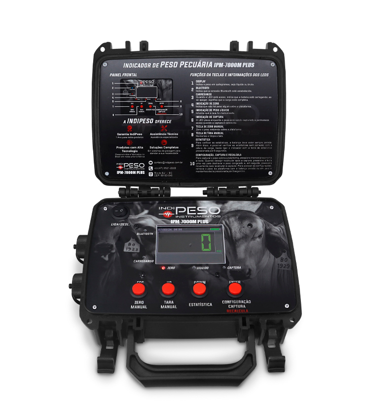 Maleta Portátil IPM-7000 PLUS com Indicador de Peso Pecuária com Bateria - Bluetooth e Aplicativo Android - Dimensões 19x23x10cm - Logo Personalizada